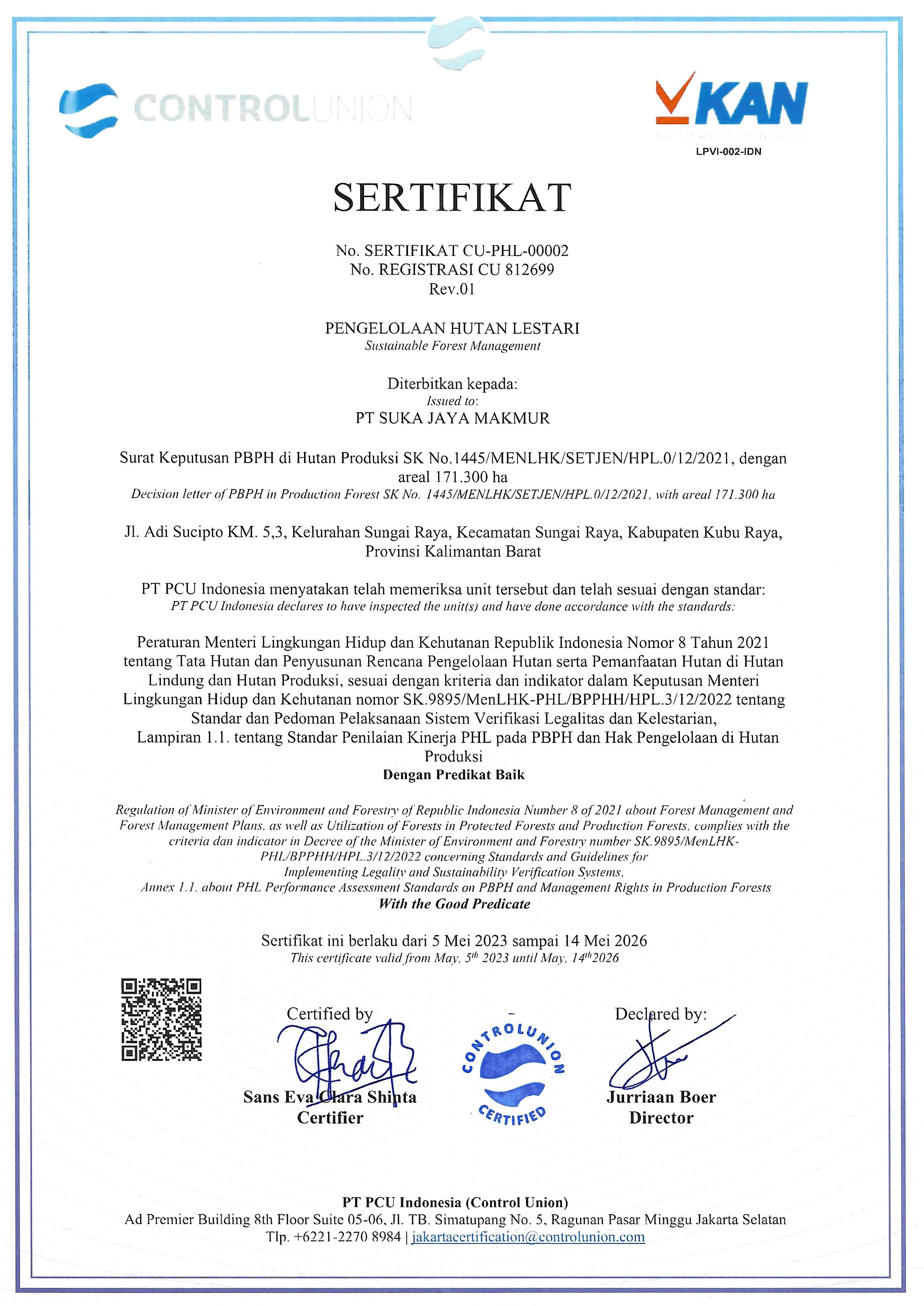 Beberapa penghargaan yang telah dicapai oleh PT. Suka Jaya Makmur antara lain :